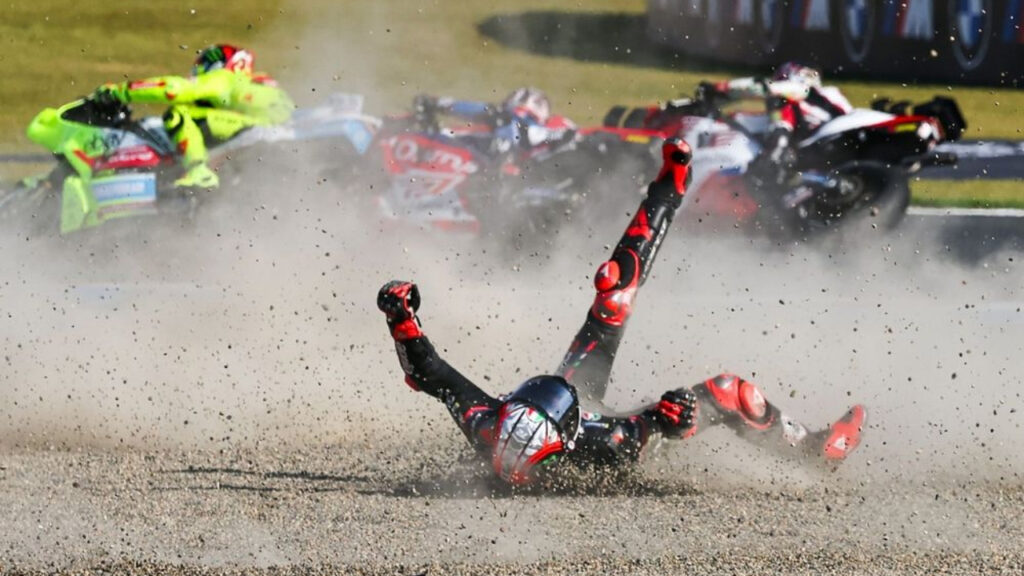 Bukemersanacokyakisir – The Japanese Grand Prix sprint brought chaos from the very first corner, and at the heart of the drama was Marco Bezzecchi. Riding for Aprilia, the Italian found himself the innocent victim of a high-risk move by team-mate Jorge Martin. Martin, launching aggressively from 17th on the grid, pushed too hard into Turn 1. The Spaniard lost control, colliding with Bezzecchi, who had started in a far stronger ninth position. For Bezzecchi, the crash was both a painful setback and a true test of endurance.